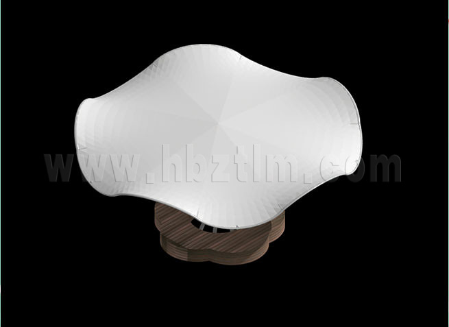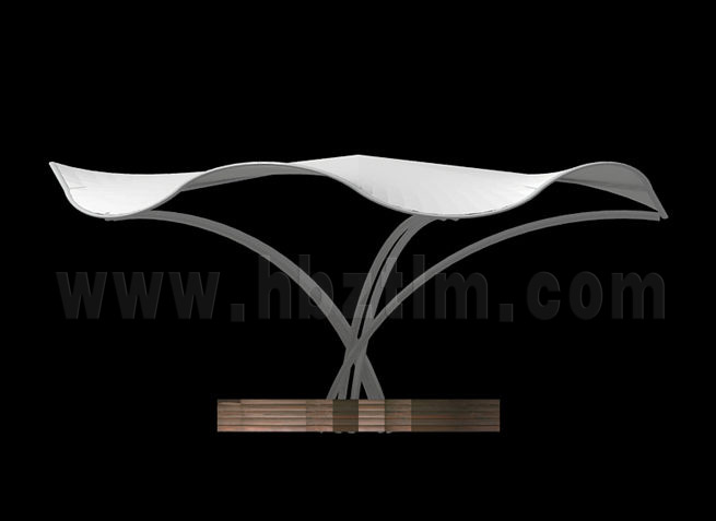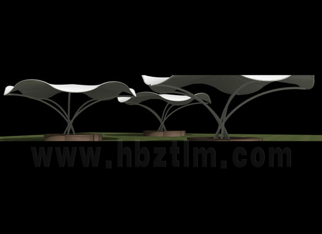 膜材采用PVDF國產或者進口建筑膜材、PTFE玻璃纖維建筑膜材、ETFE透明的永久性建筑膜材;自動放樣裁剪,高頻焊接,拉伸效果超強,曲線成型可千變萬化;膜材質保一般可達15-20年。