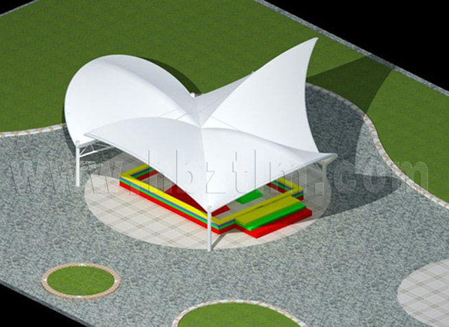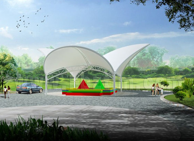 膜材采用PVDF國產(chǎn)或者進口建筑膜材、PTFE玻璃纖維建筑膜材、ETFE透明的永久性建筑膜材;自動放樣裁剪,高頻焊接,拉伸效果超強,曲線成型可千變?nèi)f化;膜材質(zhì)保一般可達15-20年。