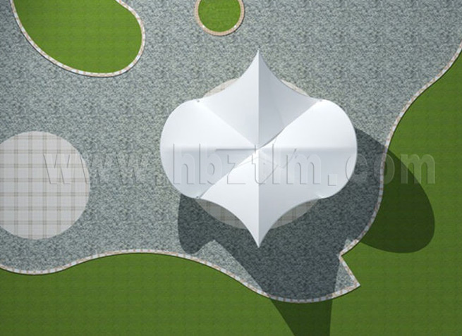 該項目為永久式景觀遮陽傘,其結(jié)構(gòu)為內(nèi)撐式冒頂膜...