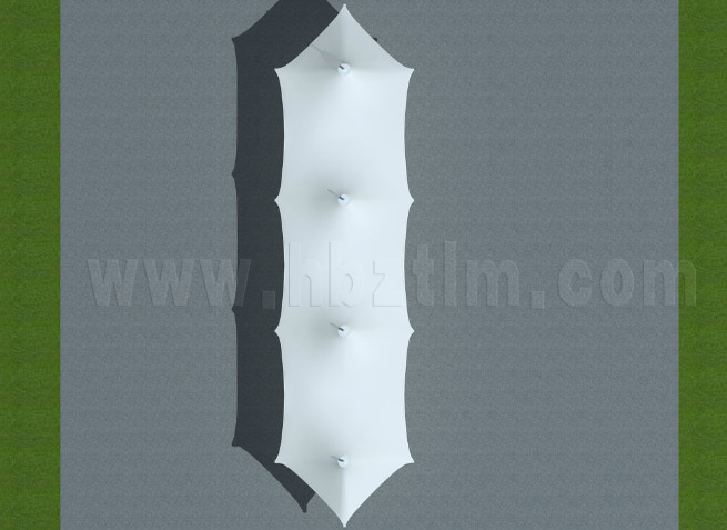 膜材采用PVDF國產(chǎn)或者進(jìn)口建筑膜材、PTFE玻璃纖維建筑膜材、ETFE透明的永久性建筑膜材;自動(dòng)放樣裁剪,高頻焊接,拉伸效果超強(qiáng),曲線成型可千變?nèi)f化;膜材質(zhì)保一般可達(dá)15-20年。