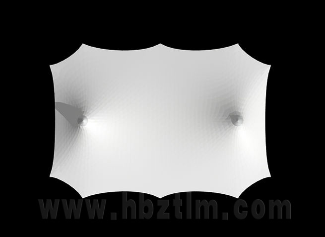 膜材采用PVDF國產(chǎn)或者進口建筑膜材、PTFE玻璃纖維建筑膜材、ETFE透明的永久性建筑膜材;自動放樣裁剪,高頻焊接,拉伸效果超強,曲線成型可千變?nèi)f化;膜材質(zhì)保一般可達15-20年。