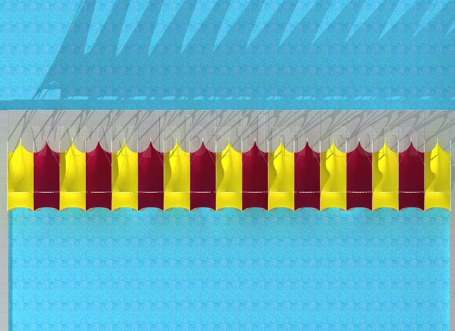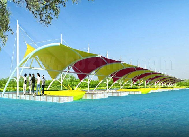 膜材采用PVDF國產(chǎn)或者進(jìn)口建筑膜材、PTFE玻璃纖維建筑膜材、ETFE透明的永久性建筑膜材;自動放樣裁剪,高頻焊接,拉伸效果超強(qiáng),曲線成型可千變?nèi)f化;膜材質(zhì)保一般可達(dá)15-20年。
