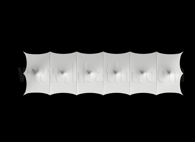 膜材采用PVDF國產(chǎn)或者進(jìn)口建筑膜材、PTFE玻璃纖維建筑膜材、ETFE透明的永久性建筑膜材;自動放樣裁剪,高頻焊接,拉伸效果超強(qiáng),曲線成型可千變?nèi)f化;膜材質(zhì)保一般可達(dá)15-20年。