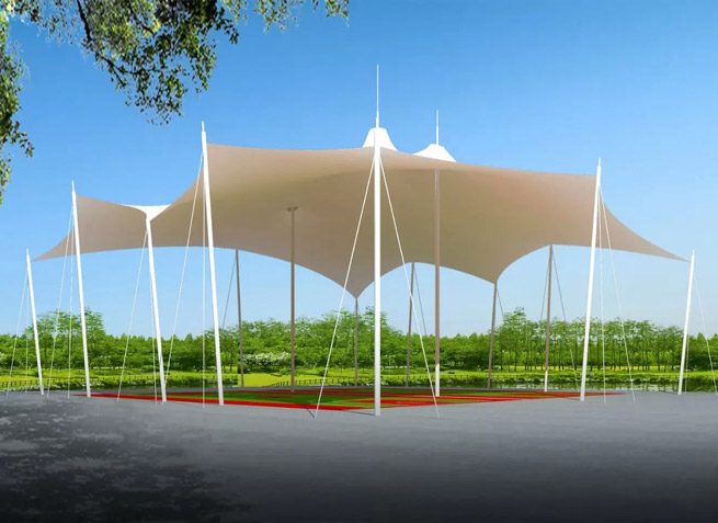 膜材采用PVDF國產(chǎn)或者進口建筑膜材、PTFE玻璃纖維建筑膜材、ETFE透明的永久性建筑膜材;自動放樣裁剪,高頻焊接,拉伸效果超強,曲線成型可千變?nèi)f化;膜材質(zhì)保一般可達15-20年。