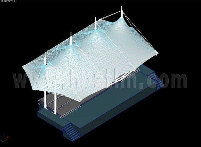 膜材采用PVDF國產(chǎn)或者進口建筑膜材、PTFE玻璃纖維建筑膜材、ETFE透明的永久性建筑膜材;自動放樣裁剪,高頻焊接,拉伸效果超強,曲線成型可千變萬化;膜材質保一般可達15-20年。