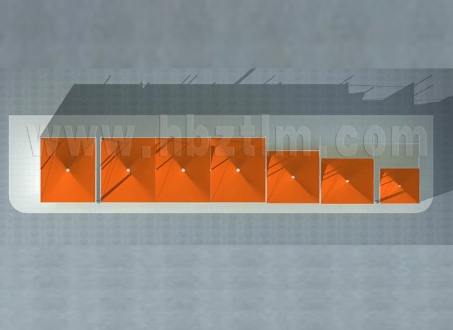 膜材采用PVDF國(guó)產(chǎn)或者進(jìn)口建筑膜材、PTFE玻璃纖維建筑膜材、ETFE透明的永久性建筑膜材;自動(dòng)放樣裁剪,高頻焊接,拉伸效果超強(qiáng),曲線成型可千變?nèi)f化;膜材質(zhì)保一般可達(dá)15-20年。