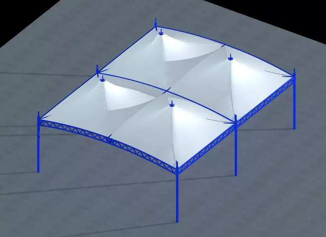膜材采用PVDF國產(chǎn)或者進口建筑膜材、PTFE玻璃纖維建筑膜材、ETFE透明的永久性建筑膜材;自動放樣裁剪,高頻焊接,拉伸效果超強,曲線成型可千變?nèi)f化;膜材質(zhì)保一般可達15-20年。