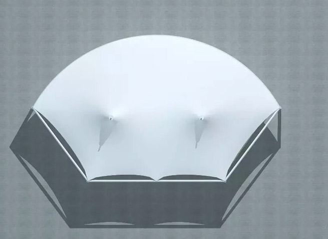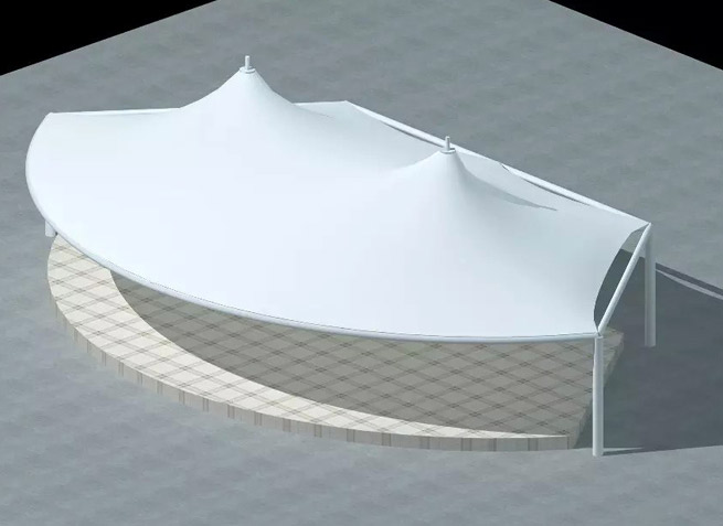 膜材采用PVDF國產(chǎn)或者進口建筑膜材、PTFE玻璃纖維建筑膜材、ETFE透明的永久性建筑膜材;自動放樣裁剪,高頻焊接,拉伸效果超強,曲線成型可千變?nèi)f化;膜材質(zhì)保一般可達(dá)15-20年。
