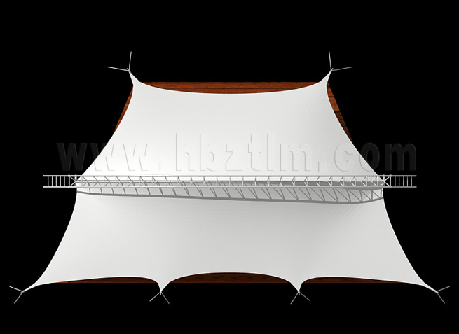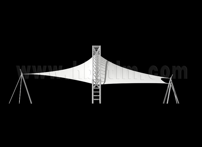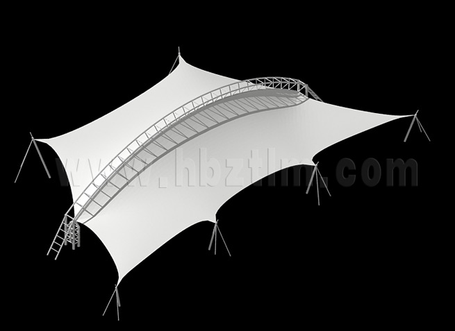 膜材采用PVDF國產(chǎn)或者進口建筑膜材、PTFE玻璃纖維建筑膜材、ETFE透明的永久性建筑膜材;自動放樣裁剪,高頻焊接,拉伸效果超強,曲線成型可千變?nèi)f化;膜材質(zhì)保一般可達15-20年。