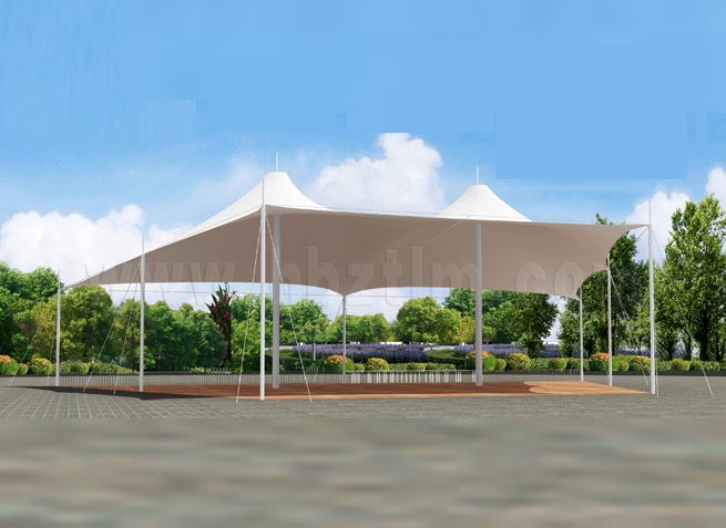 膜材采用PVDF國產(chǎn)或者進口建筑膜材、PTFE玻璃纖維建筑膜材、ETFE透明的永久性建筑膜材;自動放樣裁剪,高頻焊接,拉伸效果超強,曲線成型可千變?nèi)f化;膜材質(zhì)保一般可達15-20年。
