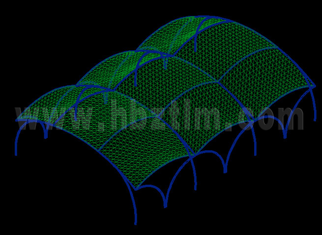 膜材采用PVDF國(guó)產(chǎn)或者進(jìn)口建筑膜材、PTFE玻璃纖維建筑膜材、ETFE透明的永久性建筑膜材;自動(dòng)放樣裁剪,高頻焊接,拉伸效果超強(qiáng),曲線成型可千變?nèi)f化;膜材質(zhì)保一般可達(dá)15-20年。