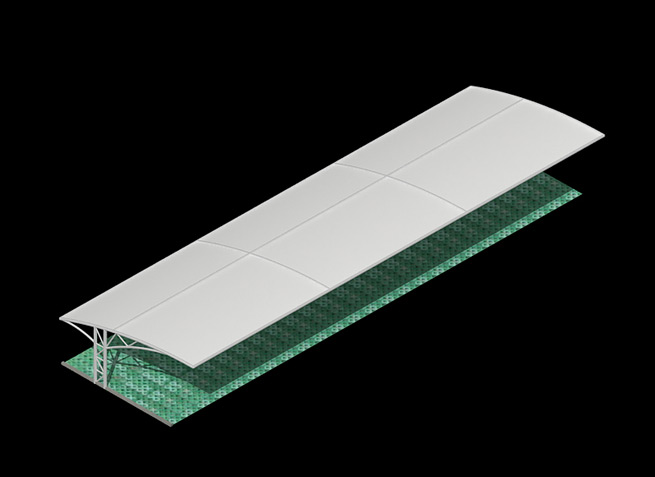 漢川吊塔式異形鋼膜結(jié)構(gòu)停車棚,本項目采用前軟邊...