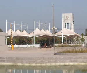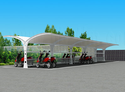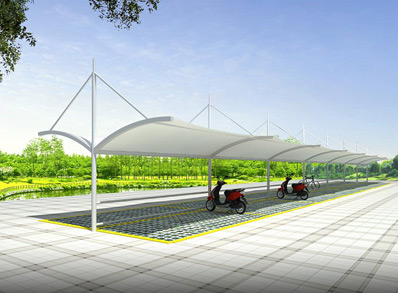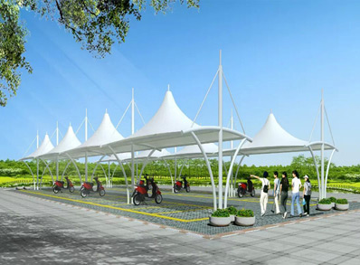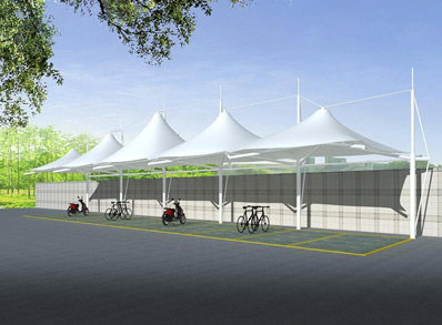 恒天嘉華張拉式冒頂膜結(jié)構(gòu)自行車車棚,本頂目為冒...