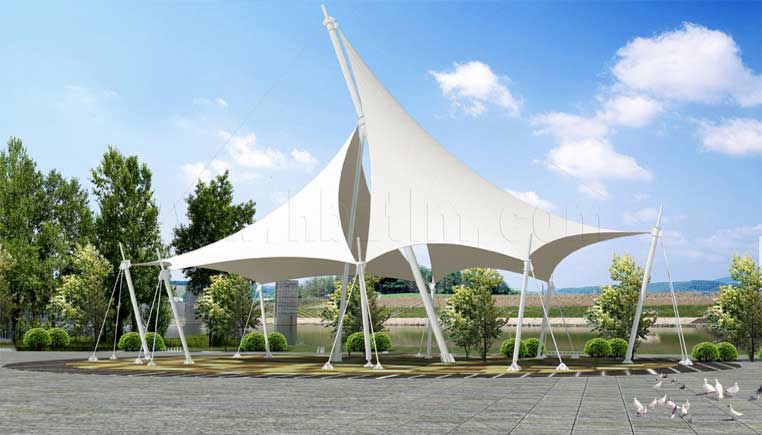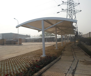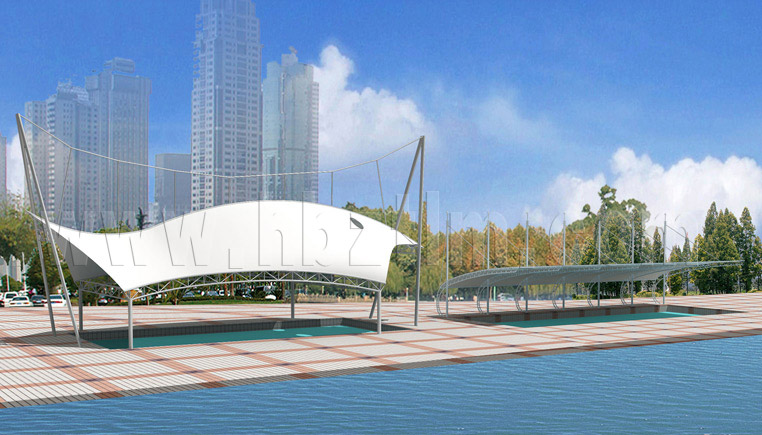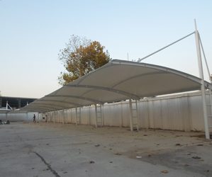 五子溝武漢機(jī)床廠T型圓管膜結(jié)構(gòu)車棚,本項目采用...