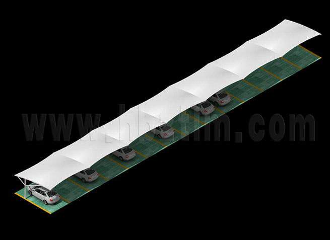 漢川吊塔式異形鋼膜結(jié)構(gòu)停車棚,本項(xiàng)目采用前軟邊...