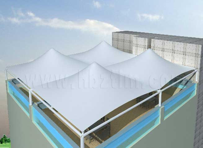 膜材采用PVDF國產(chǎn)或者進(jìn)口建筑膜材、PTFE玻璃纖維建筑膜材、ETFE透明的永久性建筑膜材;自動放樣裁剪,高頻焊接,拉伸效果超強(qiáng),曲線成型可千變?nèi)f化;膜材質(zhì)保一般可達(dá)15-20年。