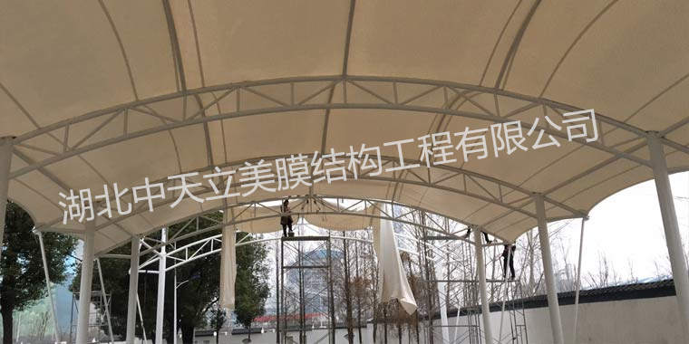 中天立美膜結(jié)構(gòu)工程公司 2011年成立致今,已擁有自主的膜材加工廠,專業(yè)施工團隊,已成功安裝膜結(jié)構(gòu)工程項目數(shù)千,客戶遍及全國各地;公司最近幾年大型施工案例有:遼寧財貿(mào)學(xué)院體育看臺膜結(jié)構(gòu),荊門看飛客大門膜結(jié)構(gòu) 荊門歡樂世界沖浪池膜結(jié)構(gòu)等膜結(jié)構(gòu)項目。