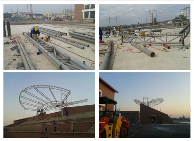 圖1 咸寧學(xué)校主席臺(tái)膜結(jié)構(gòu)工程鋼結(jié)構(gòu)現(xiàn)場(chǎng)施工圖