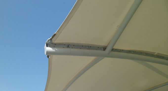 湖北美味源公司吊塔式圓管膜結(jié)構(gòu)汽車(chē)車(chē)棚,本項(xiàng)目采用前軟邊后硬邊張拉形式,結(jié)構(gòu)由立柱、拉桿、挑梁、橫桿構(gòu)成,其挑梁和中間橫桿一般采用弧管形式,美觀而不積水且抗負(fù)荷能力強(qiáng);膜材采用ZZF白色建筑膜材,15年質(zhì)保,整體結(jié)構(gòu)美觀實(shí)用,經(jīng)濟(jì)牢固,臻至完美。