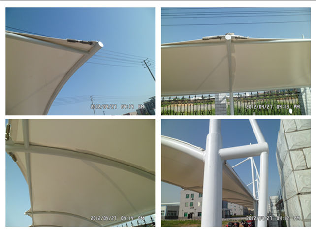 湖北美味源公司吊塔式圓管膜結(jié)構(gòu)自行車車棚,本項(xiàng)目采用前軟邊后硬邊張拉形式,結(jié)構(gòu)由立柱、拉桿、挑梁、橫桿構(gòu)成,其挑梁和中間橫桿一般采用弧管形式,美觀而不積水且抗負(fù)荷能力強(qiáng);膜材采用ZZF白色建筑膜材,15年質(zhì)保,整體結(jié)構(gòu)美觀實(shí)用,經(jīng)濟(jì)牢固,臻至完美。