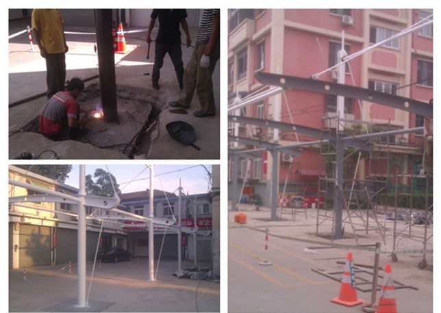 圖2 北京冀北電網(wǎng)異形鋼冒頂膜結構停車棚現(xiàn)場施工圖