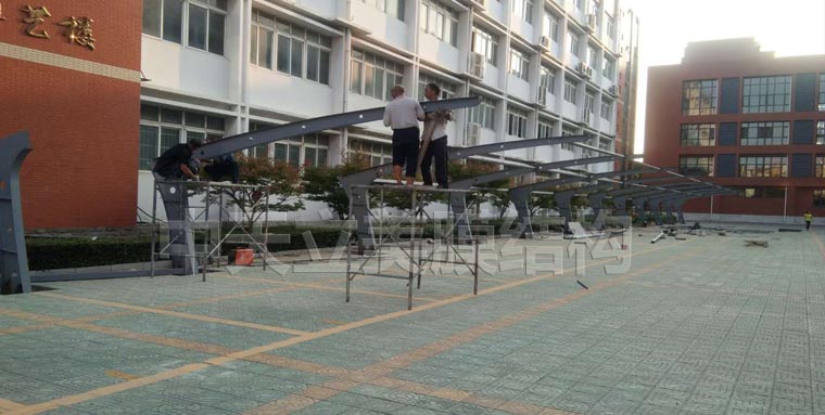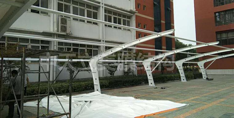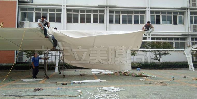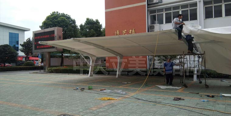 荊州江陵縣實(shí)驗(yàn)高中與中天立美膜結(jié)構(gòu)公司簽定膜結(jié)構(gòu)停車(chē)棚項(xiàng)目已順利完工,驗(yàn)收合格交付給客戶(hù)。