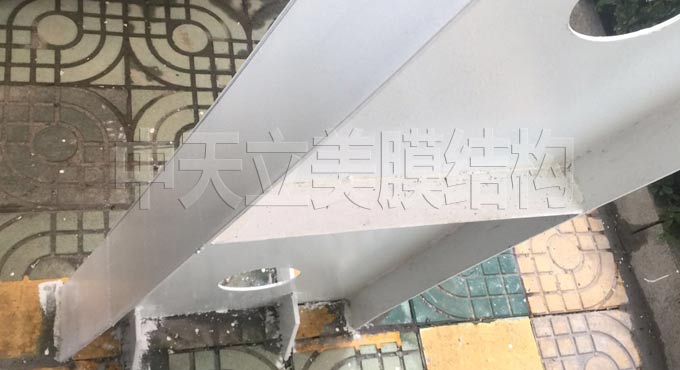 該項(xiàng)目客戶(hù)選擇L型膜結(jié)構(gòu)停車(chē)棚樣式 ,我公司設(shè)計(jì)部在老版L型膜結(jié)構(gòu)停車(chē)棚樣式的基礎(chǔ)上加以改良,立柱中間加一根撐桿,加固鋼結(jié)構(gòu),這樣膜結(jié)構(gòu)停車(chē)棚在大風(fēng)大雪天氣也不用擔(dān)心,放心安全使用。