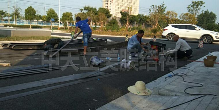中天立美膜結(jié)構(gòu)工程公司 2011年成立致今,已擁有自主的膜材加工廠,專(zhuān)業(yè)施工團(tuán)隊(duì),已成功安裝膜結(jié)構(gòu)工程項(xiàng)目數(shù)千,客戶(hù)遍及全國(guó)各地;公司最近幾年大型施工案例有:遼寧財(cái)貿(mào)學(xué)院體育看臺(tái)膜結(jié)構(gòu),荊門(mén)看飛客大門(mén)膜結(jié)構(gòu),荊門(mén)歡樂(lè)世界沖浪池膜結(jié)構(gòu)等膜結(jié)構(gòu)項(xiàng)目。