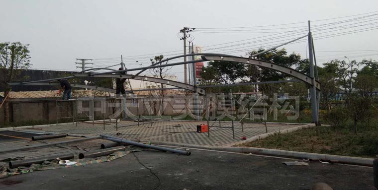 該項(xiàng)目膜結(jié)構(gòu)車(chē)棚共三處地方,客戶選擇吊塔式膜結(jié)構(gòu)車(chē)棚樣式,此樣式美觀,大方,功能性強(qiáng),抗風(fēng)遮陽(yáng)避雨效果好,是客戶選擇比較多的車(chē)棚樣式之一。