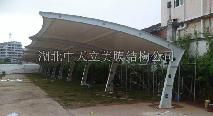 湖北泰盟電氣公司與中天立美膜結(jié)構(gòu)公司簽訂膜結(jié)構(gòu)車棚及膜結(jié)構(gòu)自行車棚項(xiàng)目,這次膜結(jié)構(gòu)車棚?客戶選用雙挑異型鋼吊塔式膜結(jié)構(gòu)車棚樣式,整體造型美觀,大方,實(shí)用,是很多客戶首選車棚樣式之一。
