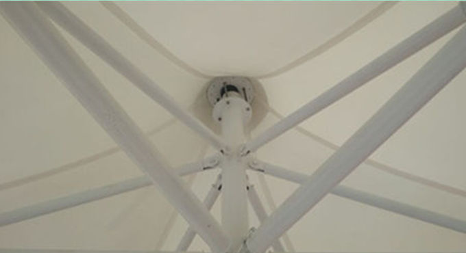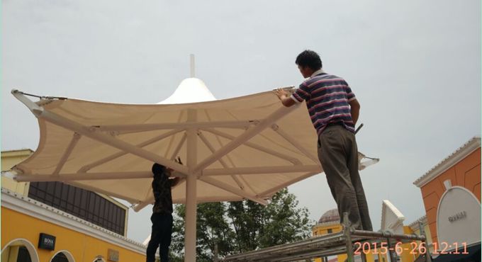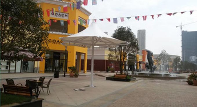 武漢百年奧特萊斯廣場(chǎng)冒頂六邊休閑景觀傘膜結(jié)構(gòu),該項(xiàng)目為永久式景觀遮陽傘,其結(jié)構(gòu)為內(nèi)撐式冒頂膜結(jié)構(gòu),單帽單立柱支撐,該項(xiàng)目每個(gè)都為單個(gè)冒頂形式,pvdf建筑膜材裁剪為單帽頂張拉,對(duì)施工工藝、精度要求高,其尺寸不受限制,可大可小,可單冒頂,也可無限連帽,為了結(jié)構(gòu)的完美,冒頂裝飾可根據(jù)現(xiàn)場(chǎng)環(huán)境和結(jié)構(gòu)需要設(shè)計(jì),該冒頂采用立桿圓盤六邊設(shè)計(jì),美觀而實(shí)用。一直是客戶的首選景觀傘膜結(jié)構(gòu)造型之一。