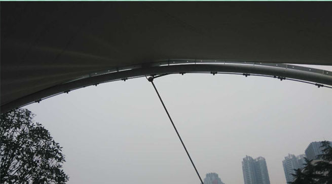 武漢科技館張拉膜景觀棚工程,該項目結(jié)構(gòu)為S型景觀功能性膜結(jié)構(gòu),也為波浪型結(jié)構(gòu),其立柱可放中間或者是兩側(cè),根據(jù)功能的需要,多為弧管連接,展現(xiàn)其優(yōu)美的線條感,通常在出入口、通道連廊、車站碼頭或者公園、廣場等地方運(yùn)用的極為廣泛。