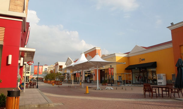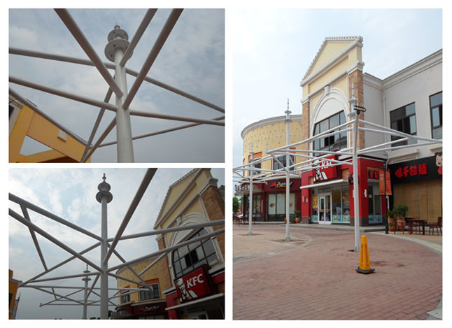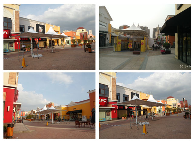圖3 百聯(lián)奧特萊斯三連帽休閑景觀遮陽傘膜結(jié)構(gòu)現(xiàn)場成品圖