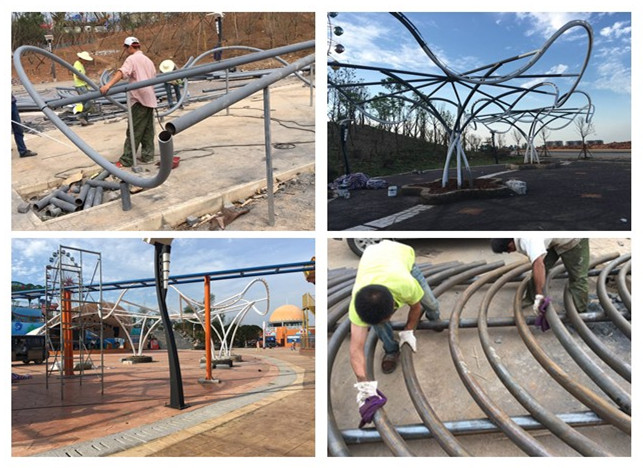 圖1 荊門市歡樂世界景觀鋼結(jié)構現(xiàn)場施工圖