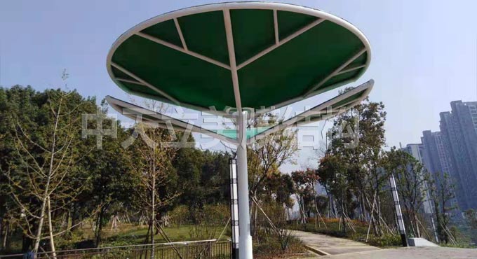 此次張拉膜項(xiàng)目我司設(shè)計(jì)師結(jié)合樂(lè)鄉(xiāng)公園主題環(huán)境設(shè)計(jì)了這款極具設(shè)計(jì)感的葉子造型,高低不異、錯(cuò)落有致鋼結(jié)構(gòu)骨架搭配五個(gè)顏色各異的彩色膜材,造型逼真同時(shí)又不失設(shè)計(jì)感 ,讓游客一到樂(lè)鄉(xiāng)公園門(mén)口就能遠(yuǎn)遠(yuǎn)看到,為樂(lè)鄉(xiāng)公園增添一份亮麗的風(fēng)景線(xiàn)。