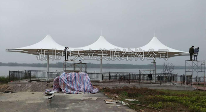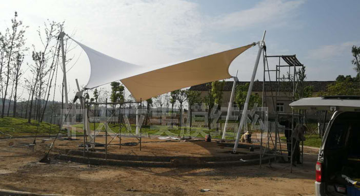 中天立美膜結(jié)構(gòu)公司隨州廣水市公園張拉膜施工,公園兩處地方,一共做了兩個造型不一樣的小景觀張拉膜,為公園增加一道亮麗風(fēng)景.