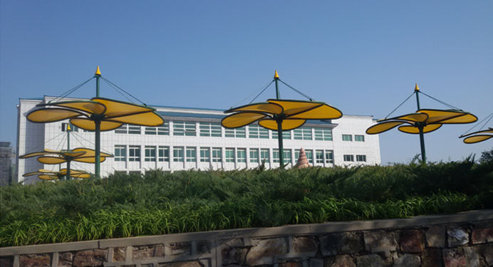 遼寧財貿(mào)學(xué)院葫蘆島景觀膜結(jié)構(gòu),該項目結(jié)構(gòu)以花瓣的外形為基本參照設(shè)計,全弧管結(jié)構(gòu)拼裝,做工精細,整體流線型的外形和建筑膜材全硬邊式張拉給人以剛?cè)嶂?,為了豐富其視角效果,我們采用了彩色建筑膜以示渲染,作為公園的休閑景觀,既給人以納涼之處,又給整體環(huán)境以時尚現(xiàn)代之美。此類結(jié)構(gòu)被廣泛應(yīng)用于公園、江河湖畔...