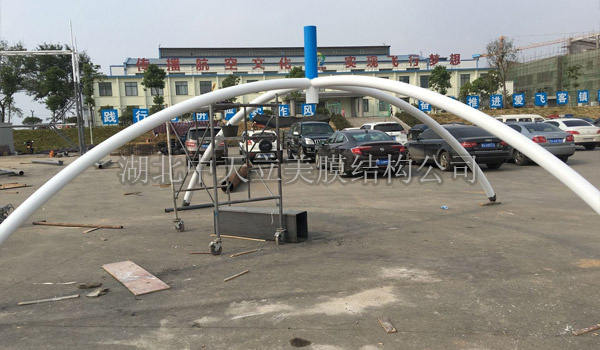 黃陂祁家灣街道辦吊塔式膜結(jié)構(gòu)車棚完工,本次車棚膜材采用PVDF1100g...