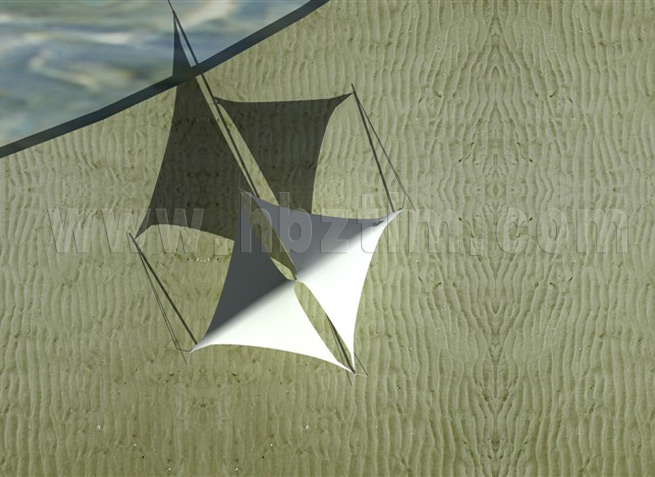 膜材采用PVDF國產或者進口建筑膜材、PTFE玻璃纖維建筑膜材、ETFE透明的永久性建筑膜材;自動放樣裁剪,高頻焊接,拉伸效果超強,曲線成型可千變萬化;膜材質保一般可達15-20年。
