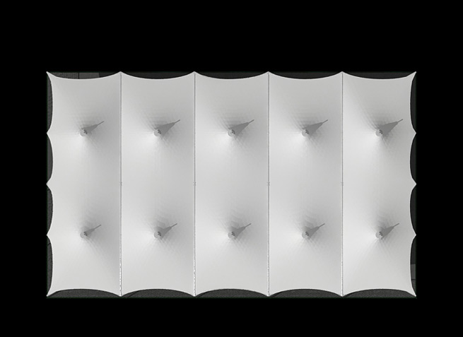 膜材采用PVDF國(guó)產(chǎn)或者進(jìn)口建筑膜材、PTFE玻璃纖維建筑膜材、ETFE透明的永久性建筑膜材;自動(dòng)放樣裁剪,高頻焊接,拉伸效果超強(qiáng),曲線成型可千變?nèi)f化;膜材質(zhì)保一般可達(dá)15-20年。