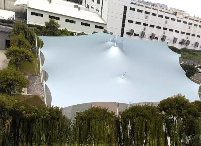 膜材采用PVDF國產(chǎn)或者進口建筑膜材、PTFE玻璃纖維建筑膜材、ETFE透明的永久性建筑膜材;自動放樣裁剪,高頻焊接,拉伸效果超強,曲線成型可千變?nèi)f化;膜材質(zhì)保一般可達15-20年。