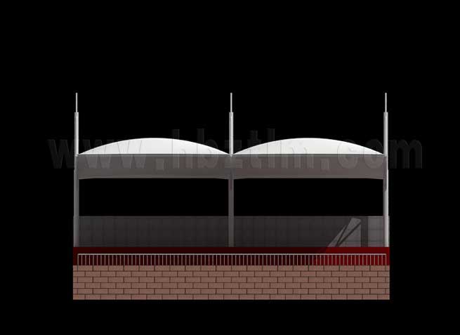 膜材采用PVDF國(guó)產(chǎn)或者進(jìn)口建筑膜材、PTFE玻璃纖維建筑膜材、ETFE透明的永久性建筑膜材;自動(dòng)放樣裁剪,高頻焊接,拉伸效果超強(qiáng),曲線成型可千變?nèi)f化;膜材質(zhì)保一般可達(dá)15-20年。
