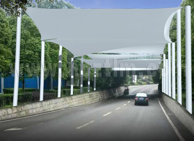 膜材采用PVDF國產(chǎn)或者進(jìn)口建筑膜材、PTFE玻璃纖維建筑膜材、ETFE透明的永久性建筑膜材;自動放樣裁剪,高頻焊接,拉伸效果超強(qiáng),曲線成型可千變?nèi)f化;膜材質(zhì)保一般可達(dá)15-20年。